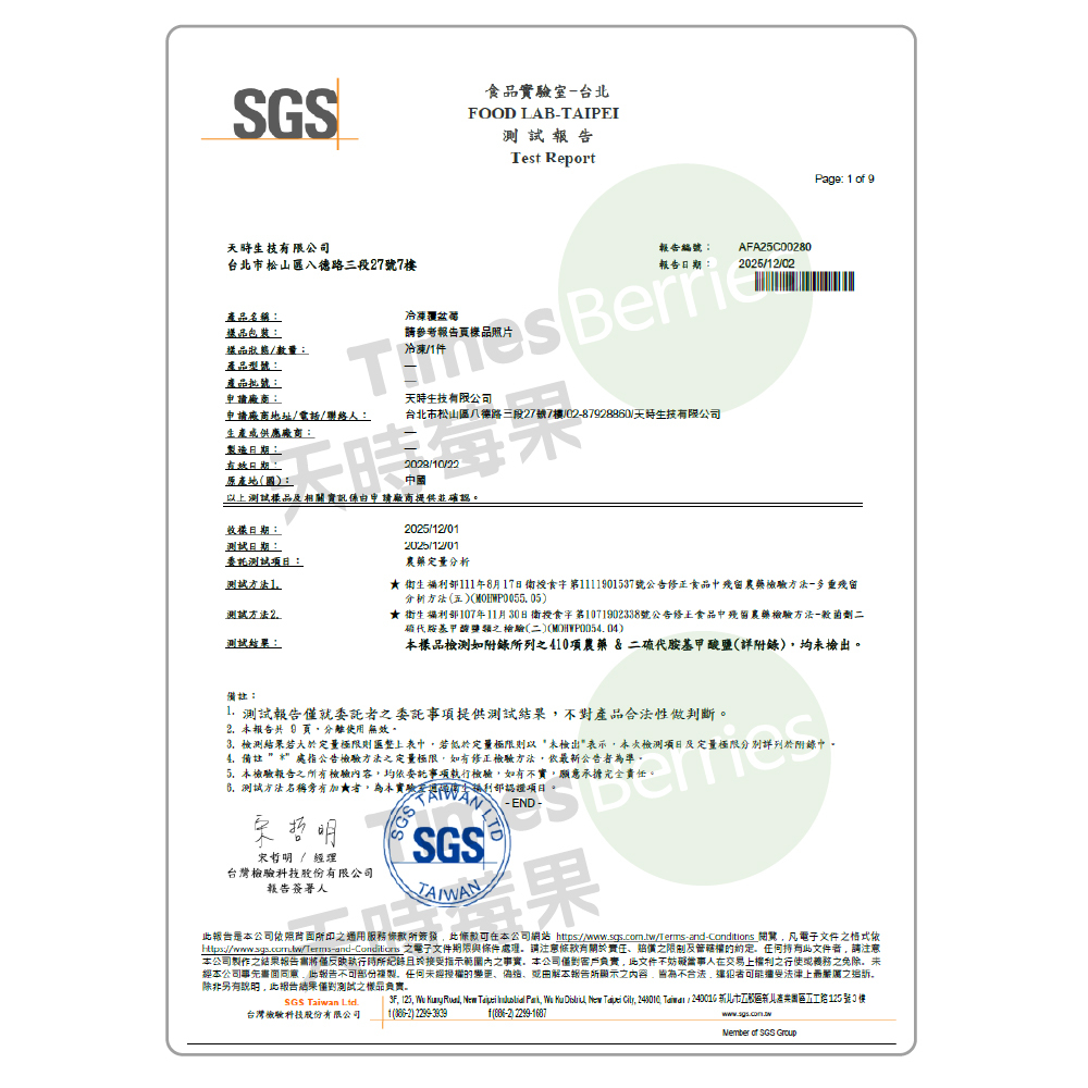 1. SGS檢驗報告-鮮凍栽種藍莓 (🔎藍莓)