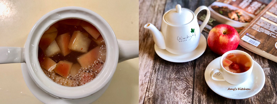 天冷會想喝熱飲,在家煮壺天然蜂蜜蔓越莓蘋果茶是幸福的味道,華盛頓富士蘋果在台灣採買方便甜度高香氣濃郁,蘋果茶做法很簡單,可以試試呦。