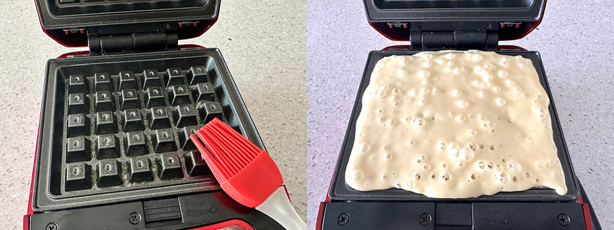 3.鬆餅機插電後塗刷點奶油,讓格子鬆餅口感酥脆。