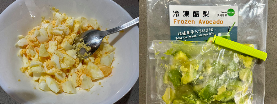 4.酪梨如果沒有已軟的酪梨,可以跟我一樣用冷凍酪梨,真空包裝放冷凍保鮮,吃多少拿多少,不用擔心沒消滅完會氧化跟一起變軟的問題,一包500g,沒完銷的酪梨,捲折好袋口再用封口夾夾好放回冷凍庫保鮮。
