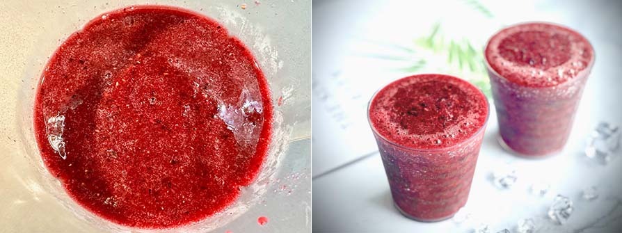 🍴 材料:冷凍藍莓4大匙、冷凍覆盆莓3大匙、冷凍黑莓3大匙、冷凍黑醋栗2大匙、冷凍蔓越莓2大匙、冷開水700毫升