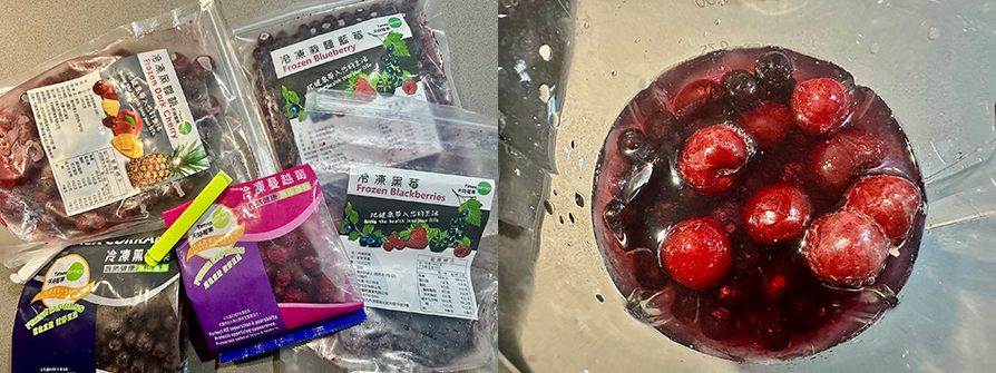 2.冷凍莓果可以冷凍宅配到家,沒水果時就拿出來,通通放到果汁機裡,加上冷開水。
