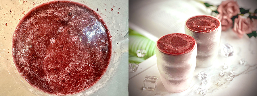 🍴 材料:冷凍藍莓4大匙、冷凍黑莓3大匙、冷凍黑櫻桃10顆、冷凍黑醋栗2大匙、冷凍蔓越莓2大匙、冷開水700毫升
