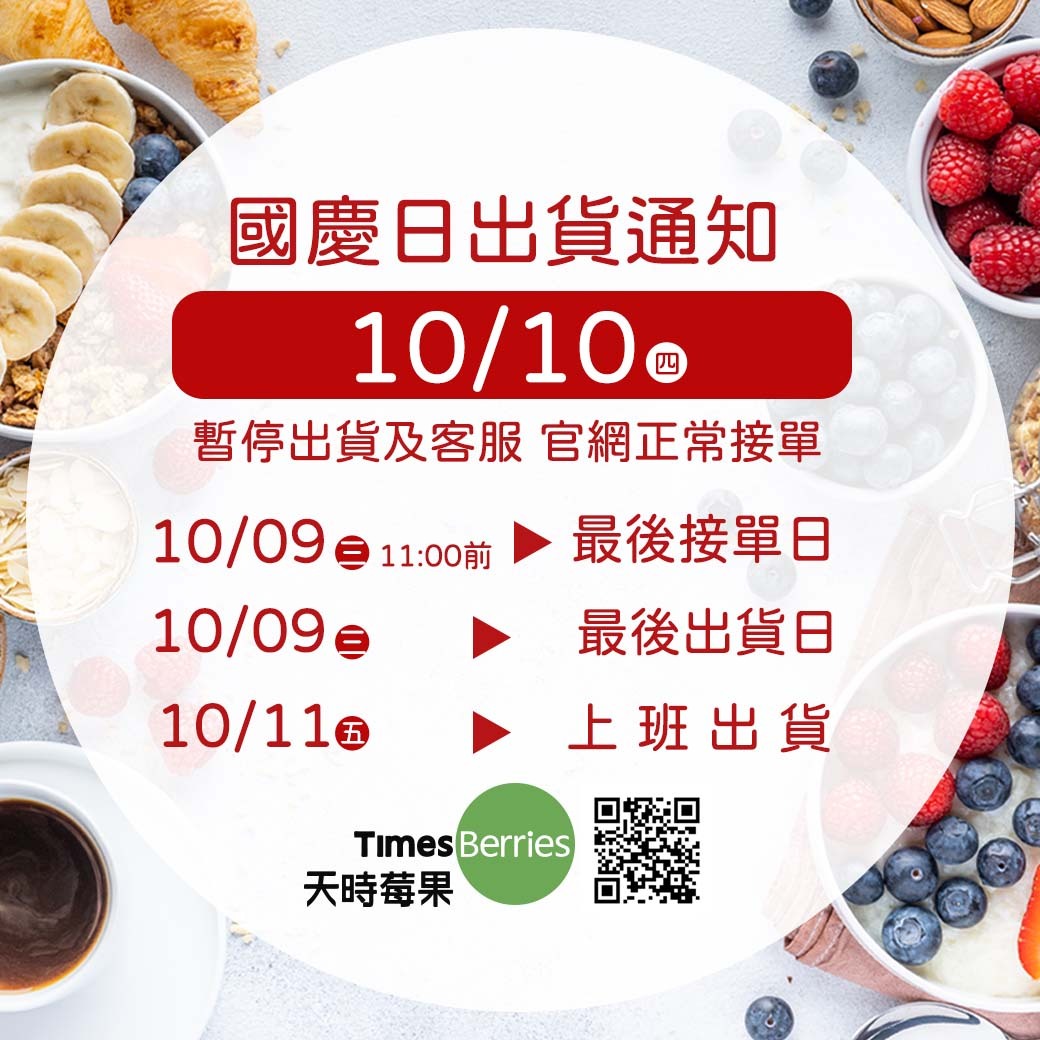 💡假期物流繁忙,建議提早下單! 祝 假期愉快! 天時莓果TimesBerries 小編 客服時間:週一至週五 9:00-17:30 官網:https://www.timesberries.com/ 客服LINE:https://reurl.cc/WvG4D7
