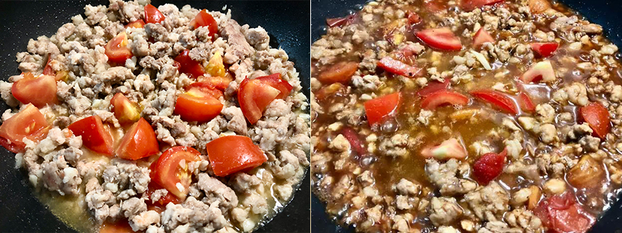3.●蕃茄2/3跟絞肉一起燉入味,留1/3最後再加,這樣成品留有蕃茄口感視覺也美。