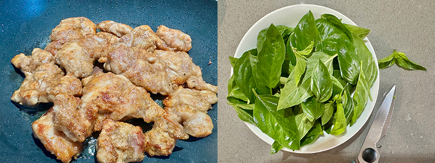 去骨雞腿排600克、九層塔1把、玄米油或酪梨油2大匙、