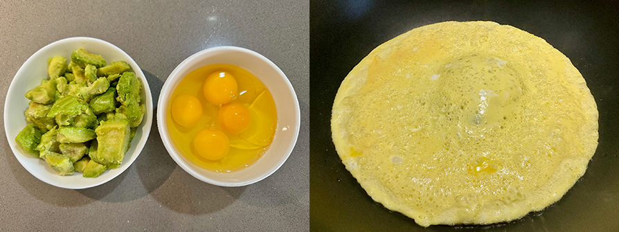 歐包1個、鮮蝦12隻、冷凍天時酪梨300克、雞蛋4顆、酪梨油4小匙、黑胡椒粒1/3小匙