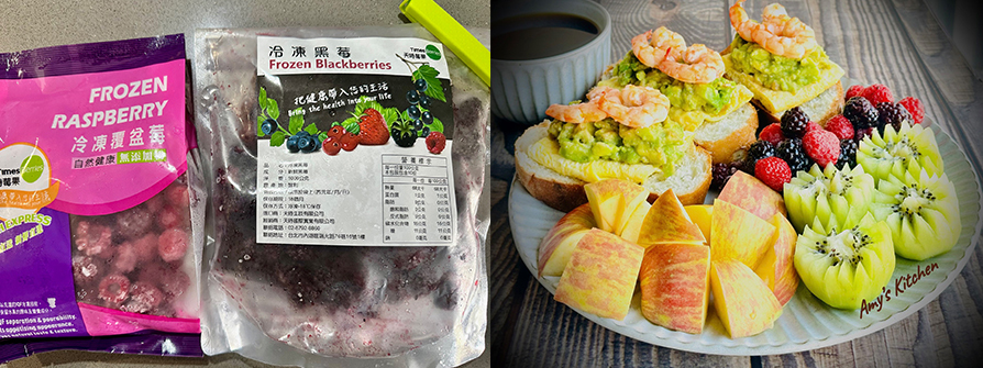9.最後,要上桌前再從冷凍取出營養早餐的好朋友,冷凍莓果, 均衡攝取營養的概念各種冷凍莓果交叉食用,今天吃覆盆莓跟黑莓。