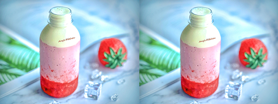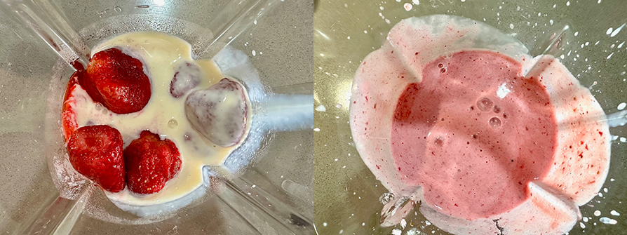 10顆放到果汁機裡加50cc豆奶打成草莓奶。