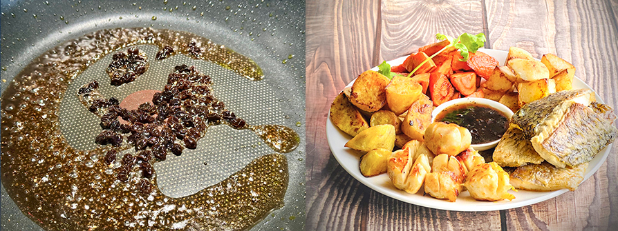 3.先煎魚再用魚油煎其他食材這樣整道菜都很鮮。