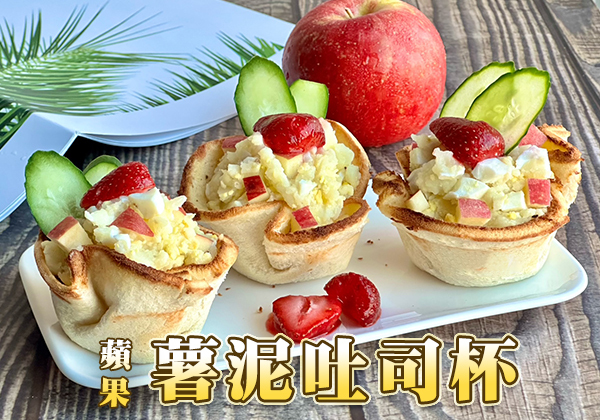 冬天開烤箱有幸福感,吐司烤香變身香酥吐司杯,薯泥加華盛頓蘋果提升口感層次,營養美味點心輕鬆就能完成。