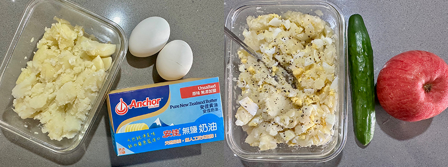 ※馬鈴薯沙拉也可加美乃滋或鮮奶油提升滑順口感,家常點心好吃健康為首要我沒加就覺好吃。