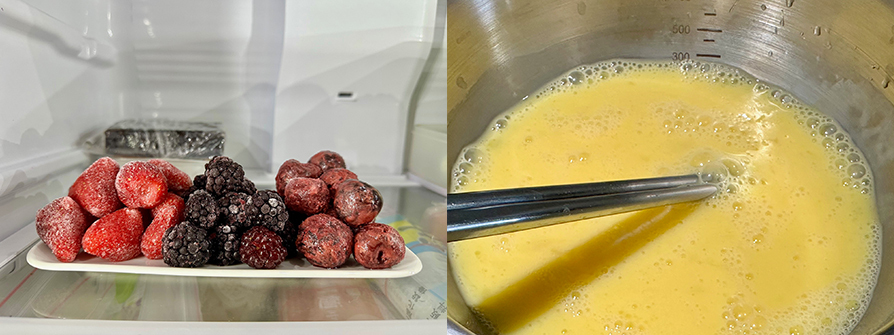 3.冷凍莓果先擺放好在要上桌的盤上,先放到冷藏保鮮,這樣整道早午餐完成時冷凍莓果剛好是微退冰狀態剛剛好。