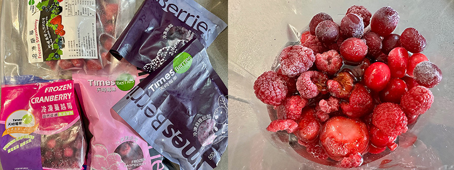1.冷凍莓果可以依照庫存搭配,酸的蔓越莓搭甜的藍莓跟黑莓及微酸甜的草莓跟覆盆莓,這樣可以平衡口感也能有多元的營養素,然後如果跟我一樣喜歡假掰餐桌美學,我會用湯匙挑不是哪麼美的莓果來打汁,這樣網美餐就可以隨便抓都是美美的果實,這樣不浪費食物心情也棒棒的。