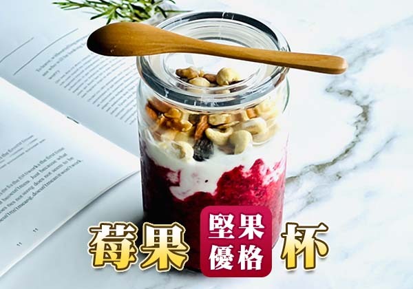 冷凍莓果80克、原味優格250克、綜合堅果60克