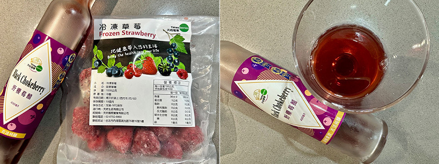 1.天時冷凍草莓跟野櫻梅果醋,網路冷凍宅配很方便買,果醋開封後放冷藏保鮮,冷凍莓果放冷凍保鮮。