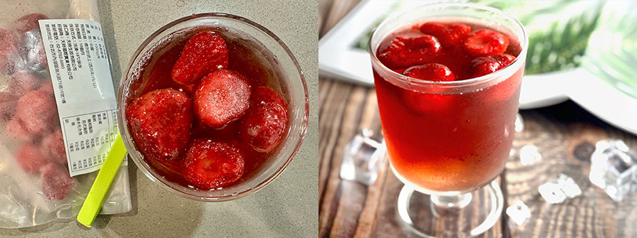 3.再加冷凍草莓,再加飲用水,完成。