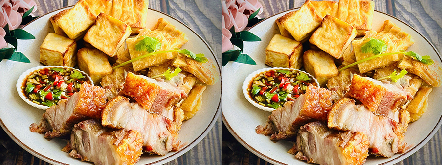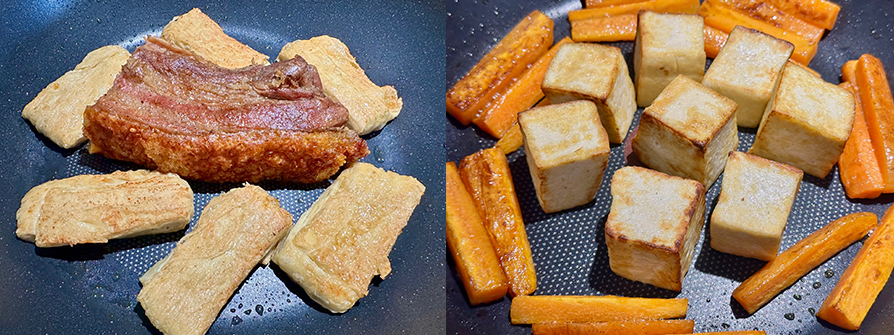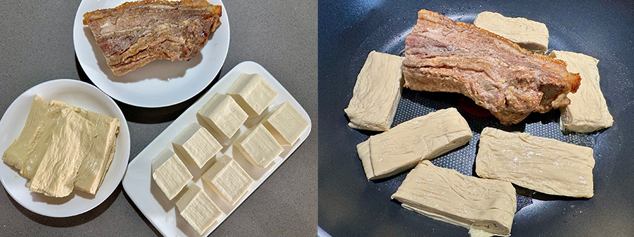 脆皮燒肉300g、板豆腐1塊、豆包3片、玄米油或酪梨油3小匙