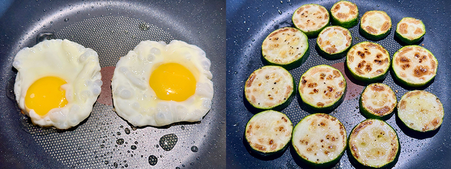 5.荷包蛋跟櫛瓜備好了。