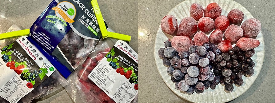 7.所有材料都備好的時候再從冷凍取出冷凍莓果,用乾淨湯匙取想要的份量。