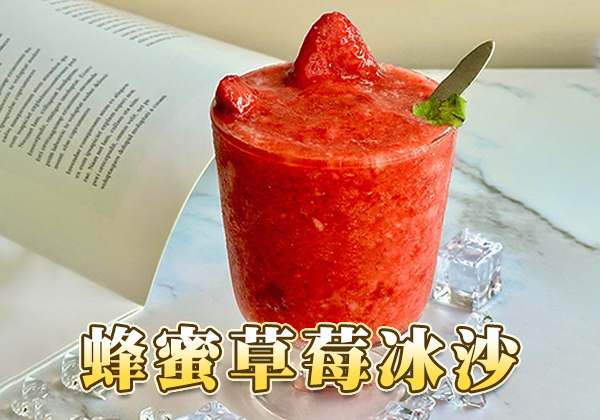 4.加純蜂蜜跟冷凍草莓自身的冰,滋味好醇厚,爬完山曬太陽後來一杯冰冰涼涼好讚。