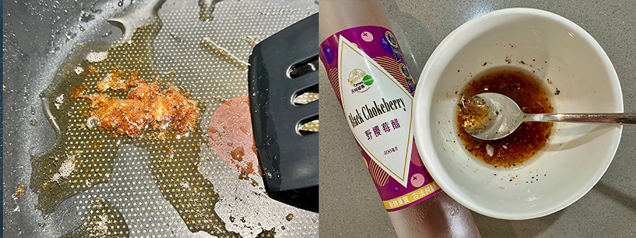 蝦油(煎蝦的油)1/2大匙、天時野櫻莓果醋1大匙、黑胡椒粒1/3小匙、醬油1小匙