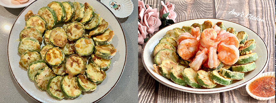 9.●櫛瓜片也兩面沾薄粉再沾蛋液,也可以先沾蛋液再沾麵粉,兩種都試過。