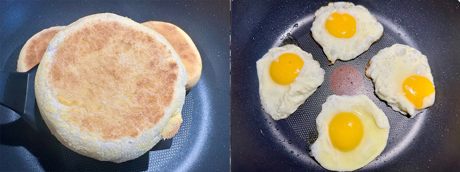 5.早餐好朋友荷包蛋,煎好不重疊均勻擺好備用。
