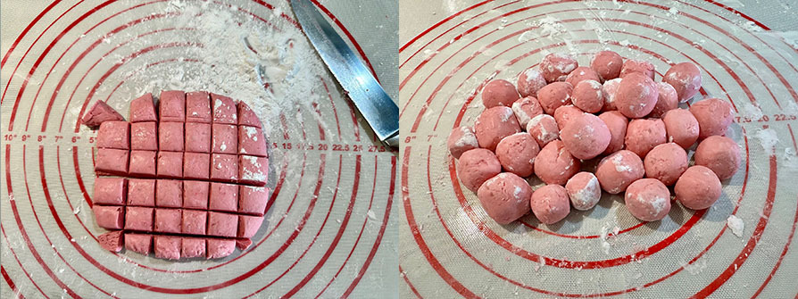 8.再把每顆小方麵糰,一顆顆放在手掌心上揉成圓。