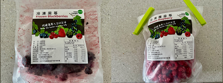 9.最後,所有都備好的時再從冷凍取出冷凍莓果,用乾淨湯匙取想要的份量,今天來消滅剩下的黑莓順補補膠質清清血管。