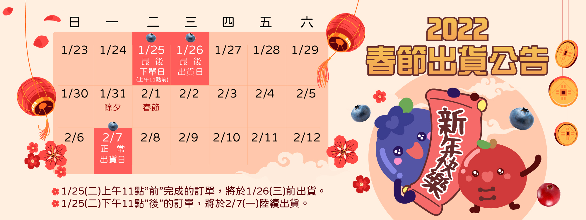 🏮 1/25(二) 11:00 前完成付款之訂單,於1/26(三)出貨。