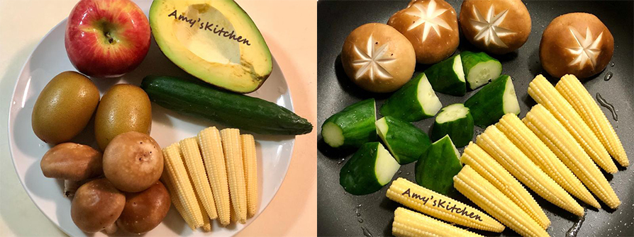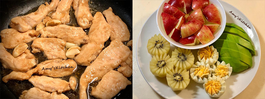 8.利用炒鮮蔬跟煎雞柳時間,切水果、蛋刻花、滴咖啡