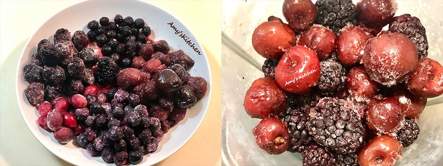 5.用乾淨湯匙挖取冷凍莓果,黑櫻桃跟藍莓口感甜,可以平衡黑醋栗跟蔓越莓的微酸,天天吃就是要吃出自己喜歡的樣子,這樣搭配口感很好