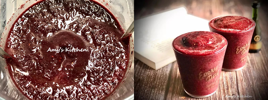 6.作法就一個步驟,通通丟到果汁機裡按下開關就完成啦。 (莓果:開水=1:0.6)這樣比例濃稠好喝