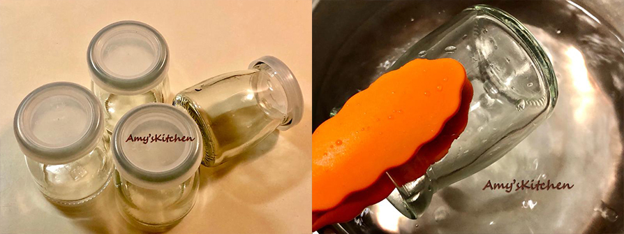 4.保羅瓶用滾水汆燙後瀝乾,瓶蓋也過一下水消毒喔