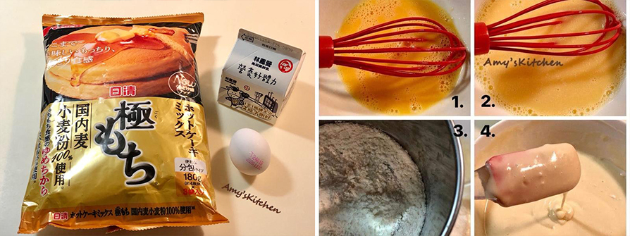 1.鬆餅麵糊材料就這樣,鬆餅粉+有機蛋+鮮奶(如果不適合吃鮮奶也可以用冷開水)。鬆餅品牌依方便購買即可,日清鬆粉口感很適合做舒芙蕾