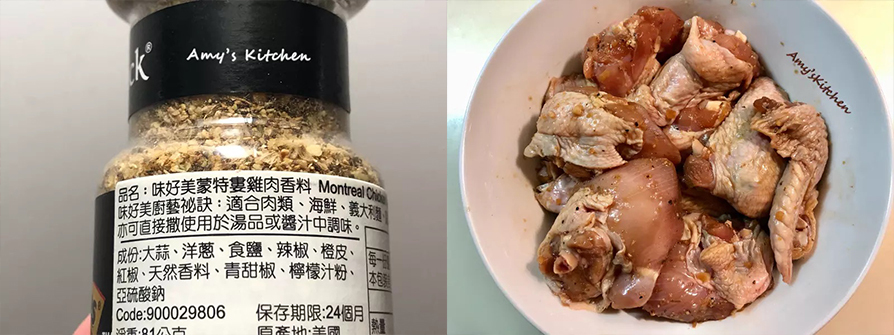 蒙特婁雞肉香草香料 1小匙、醬油或素蠔油 2小匙、蜂蜜 1.5小匙、白胡椒粉 1/4小匙