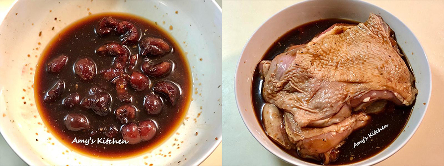 5.雞肉醃料加了另一個秘密武器:7顆鮮凍黑櫻桃。(黑櫻桃無核用湯匙切碎)