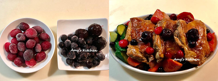 鮮凍黑櫻桃無籽很對胃,櫻桃烤雞腿果鮮肉嫩,好吃。