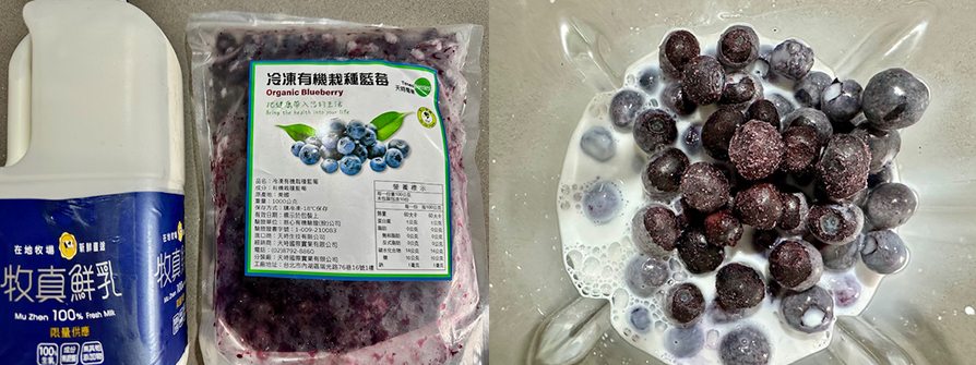 2.藍莓直接放到果汁機,打果汁果肉先放再加液體可防噴濺。