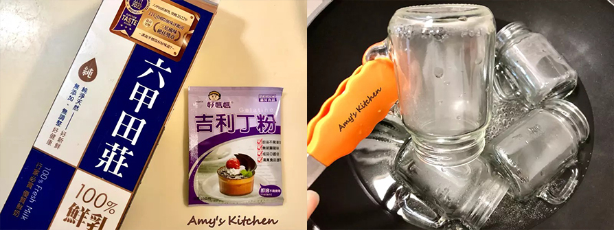 1.鮮奶依食用習慣品牌即可,如希望奶味醇厚一些,也可把鮮奶的比例部分用鮮奶油。吉利丁粉或吉利丁都可,一包吉利丁粉10克。