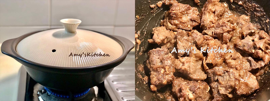 2.燒排骨選用鍋具,選習慣使用的鍋具即可,不鏽鋼鍋鑄鐵鍋都可,我習慣先喝咖啡才吃飯,用陶土鍋可以煮好保溫。