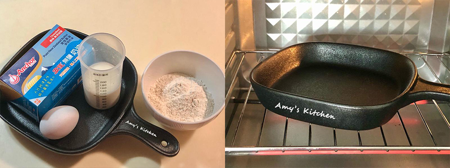 2.烤箱上下火預熱220度(順便把鑄鐵盤放進去烤熱)。