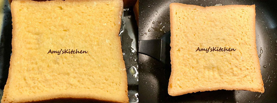 10.熄火看一下她另一面的姿態,可以出去見人了。 繼續下一位(煎下一片吐司)