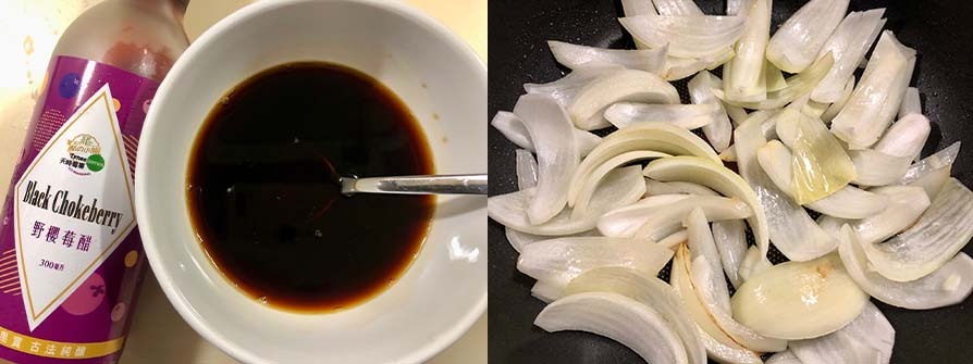 素蠔油2小匙、天時野櫻莓果醋2大匙、黑胡椒粒1/4小匙、白胡椒粉1/3小匙、五香粉1/3小匙、水2大匙