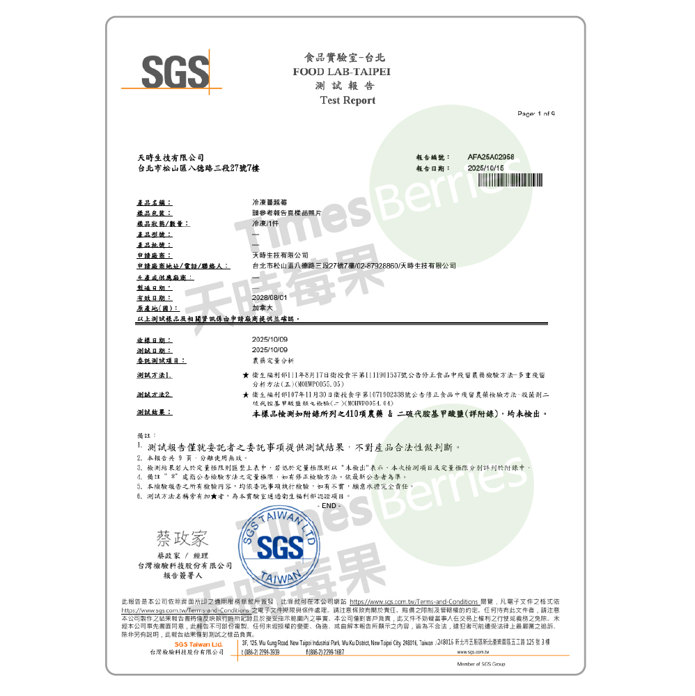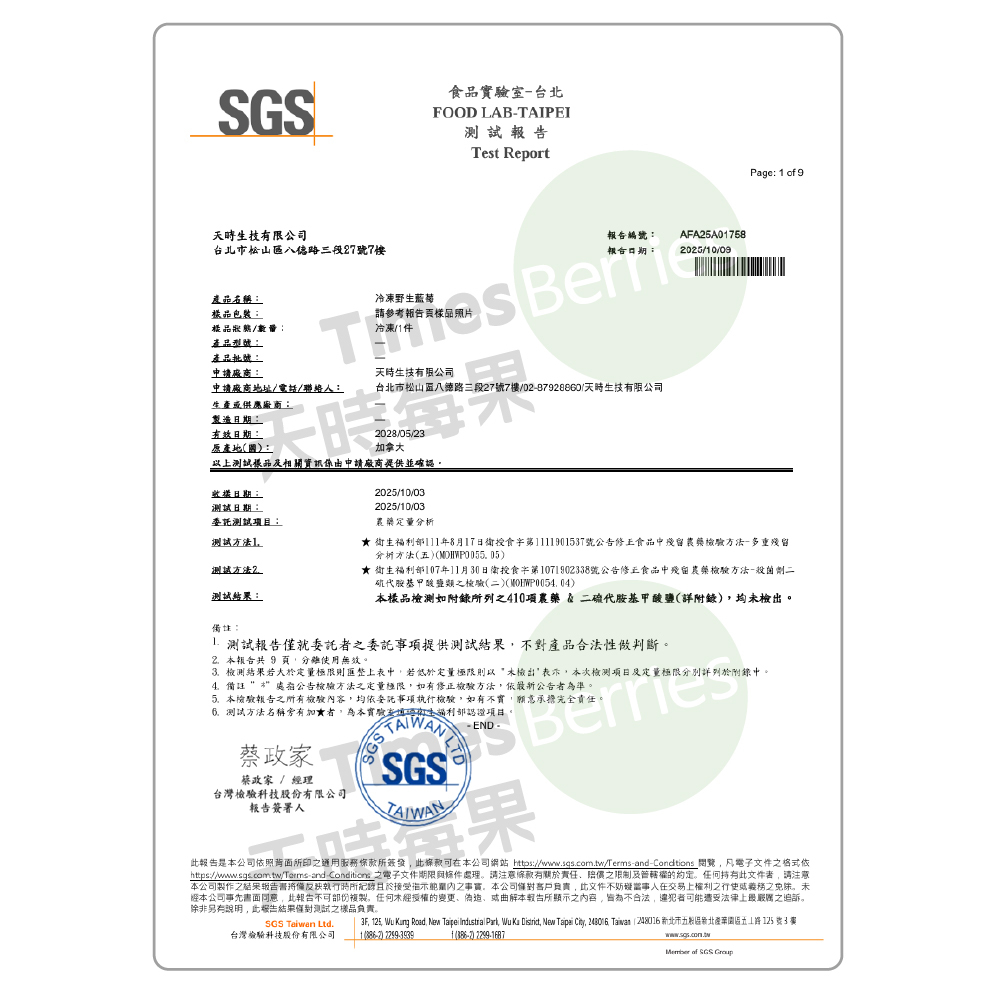 首頁 / 關於天時 | 為什麼選擇天時 | 檢驗報告📄 | 銷售據點 | 常見問題❓ | 🔎找莓果