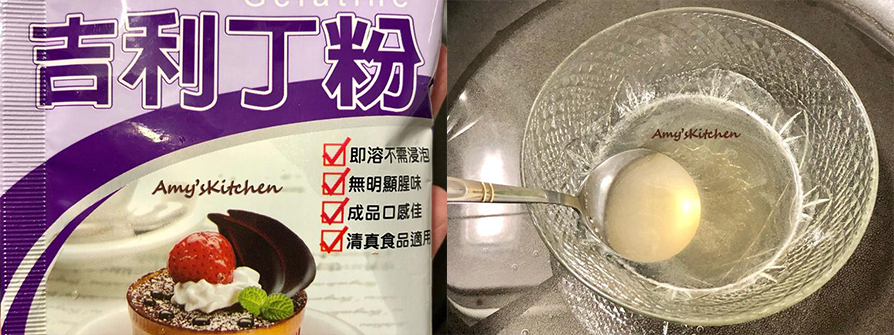 3.吉利丁粉或吉利丁都可,這款吉利丁粉1包10克。(鮮奶+水):吉利丁粉=500:10克 (液體多與少影響奶酪口感軟硬,喜歡布丁口感液體可以加至500CC)