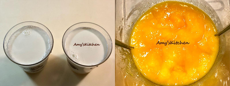 鮮奶 460cc、吉利丁粉 10克、開水 40cc、鮮凍芒果 300克