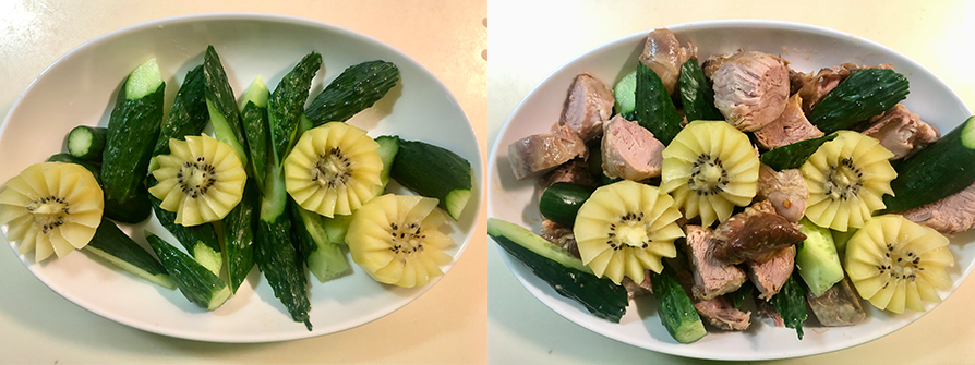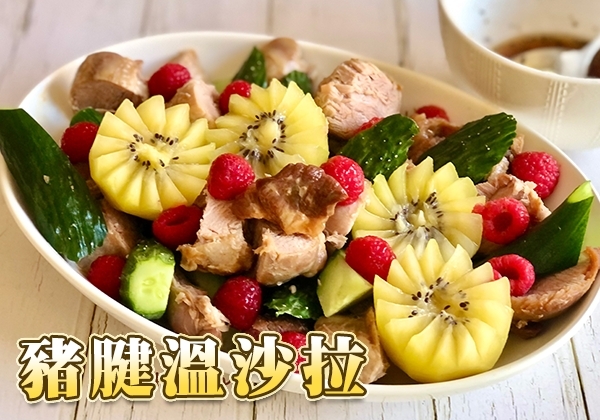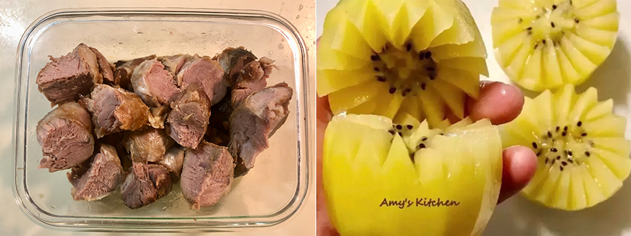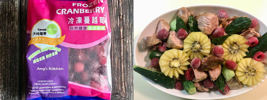 自己滷豬腱心3顆、黃金奇異果2顆、有機小黃瓜1根、天時冷凍覆盆莓15顆