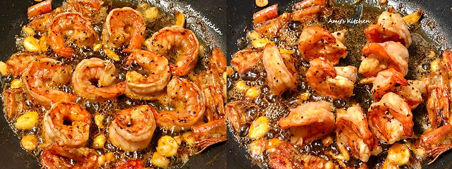 蝦油練約2分鐘時間加蒜瓣一起蓋鍋煸2分鐘。